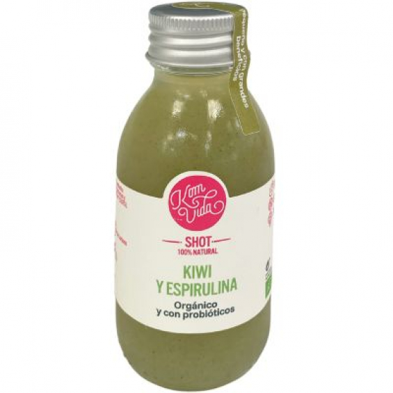 Shot Kiwi y Espirulina de Komvida es un pequeño concentrado verde de superpoderes para tu cuerpo. Combina la frescura del kiwi con la espirulina ecológica , creando una explosión de clorofila, minerales y antioxidantes que ayudan a combatir el estrés oxidativo y a mejorar la vitalidad desde dentro. La espirulina es un auténtico superalimento marino, rica en proteína vegetal y hierro , que fortalece tu energía y remineraliza el cuerpo. Al mismo tiempo, el kiwi aporta vitamina C y fibra , para mantener tu digestión y sistema inmunológico en forma.