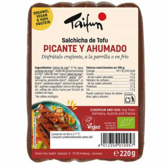 Las Salchichas Barbacoa Picantes de Taifun combinan el sabor ahumado del tofu con un toque de picante que las hace irresistibles. Elaboradas para disfrutar tanto asadas como a la parrilla, ofrecen una textura jugosa y un aroma intenso que conquista desde el primer bocado. Su receta está pensada para quienes buscan alternativas vegetales llenas de sabor, perfectas para acompañar con verduras, pan artesanal o salsas frescas. El equilibrio entre el ahumado y el picante crea un perfil de sabor versátil que se adapta tanto a platos creativos como a preparaciones clásicas. ¡Encuéntralas con el mejor precio en GHDFresc!