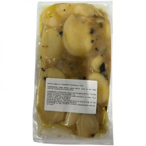 Patata (56%), cebolla (35%), aceite de oliva, sal, trompetas de la muerte (0,3%).
