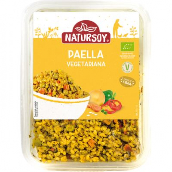 Paella vegetariana Bio 300gr Natursoy. Es un plato preparado vegetariano de arroz integral, vegetales y algas. Esta paella vegetariana es perfecta cuando necesitas una comida ecológica de rápida preparación, sólo tienes que calentar y servir. En GHDFresc somos tus aliados en productos para tu dieta vegetariana.