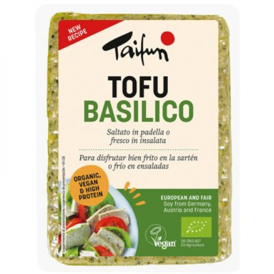 Tofu Basílico 200gr Taifun. Este tofu con albahaca tiene un delicioso aroma a hierbas aromáticas y puede acompañar platos fríos y calientes. Es una proteína vegetal ideal para dietas veganas y dietas vegetarianas pero es tan saludable que puede agregarse a cualquier tipo de dieta. Las carnes veganas de Taifún son la alternativa a la carne que no puede faltar en tu alimentación.